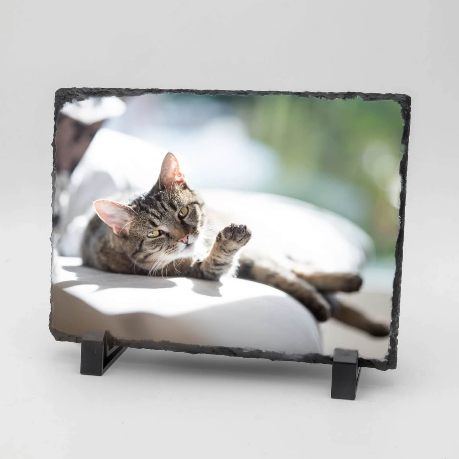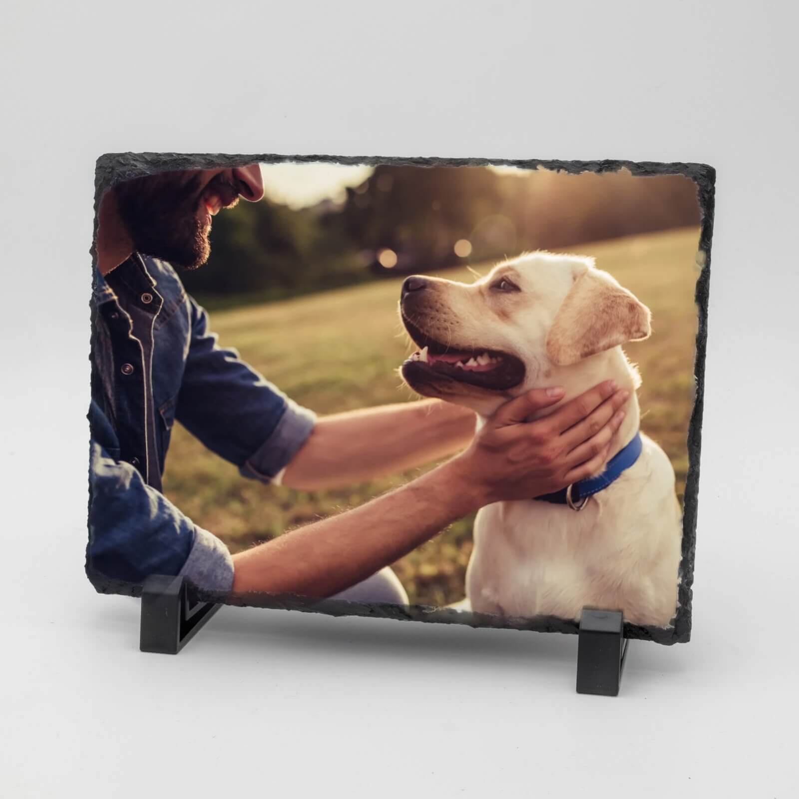 Deze leistenen gedenktegel helpt je om die mooie herinneringen een plek te geven. Het natuurlijke karakter van leisteen straalt rust uit – precies wat je nodig hebt in deze periode. Door de liggende rechthoekige vorm krijg je alle ruimte voor een prachtige foto van je dier, aangevuld met tekst die jouw verhaal vertelt.