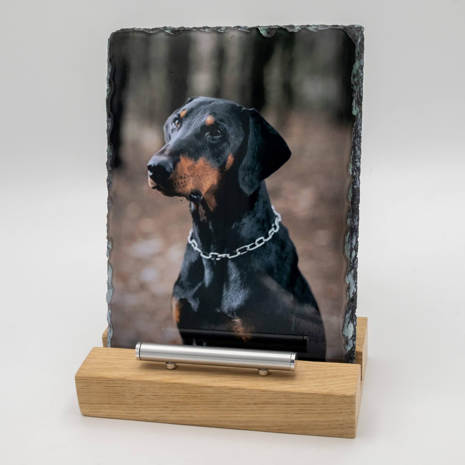 Deze rechthoekige gedenktegel van natuurlijk leisteen biedt precies dat. Het robuste materiaal staat symbool voor de kracht van jullie band – onwrikbaar en tijdloos. De staande rechthoekige vorm van 15 bij 20 centimeter is als gemaakt voor die ene perfecte foto waar je viervoeter zo mooi op staat. Je weet wel, die foto waarbij je hart nog altijd een sprongetje maakt.