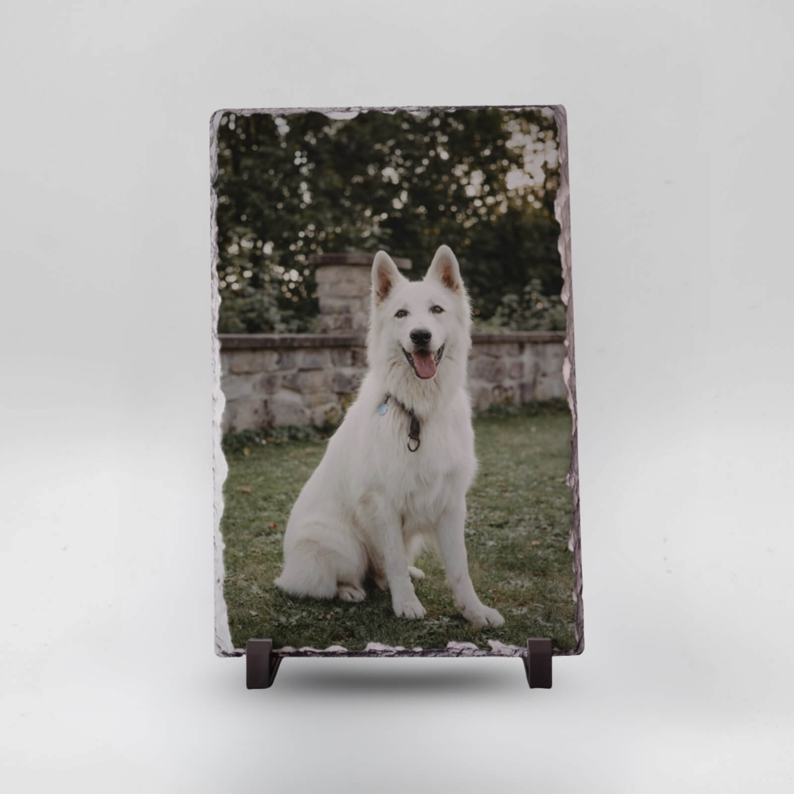 Deze rechthoekige gedenktegel van 20×30 cm is daar perfect voor. Het formaat geeft je alle ruimte om je verhaal te vertellen. Plaats er een verticale foto van je hond, kat, konijn of ander geliefde dier op. Voeg er een tekst aan toe die jouw gevoelens weergeeft. Misschien wel die ene grappige eigenschap die zo typisch was, of gewoon hun naam met een hartje.
