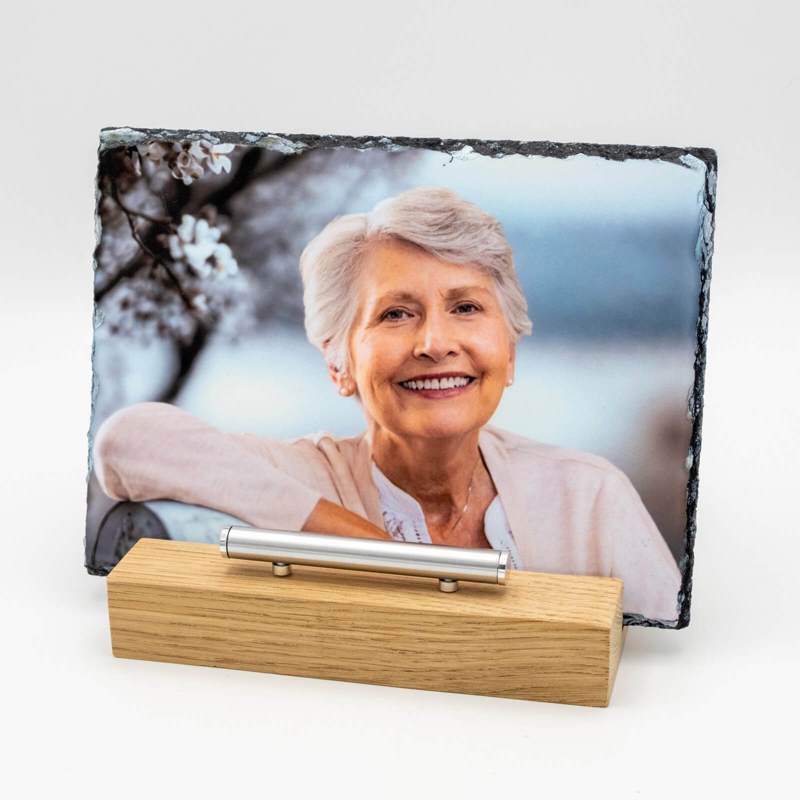 Met een afmeting van 20 x 15 cm is deze rechthoekige gedenktegel met foto een persoonlijke manier om een mooie herinnering dichtbij te houden. Creëer een tastbare herinnering op deze liggende tegel van leisteen en zorg dat kostbare momenten bewaard blijven. Door de mogelijkheid om dit tegeltje te personaliseren, voeg je eenvoudig een foto, tekst of een combinatie van beide toe. Plaats de gedenktegel in combinatie met een houder op iedere gewenste plek waar je een gedenkhoekje wilt inrichten. Zo blijven de bijzondere momenten tastbaar en kun je deze op ieder gewenst moment bewonderen. Ontdek de mogelijkheden van dit leistenen gedenktegeltje en maak jouw unieke aandenken.