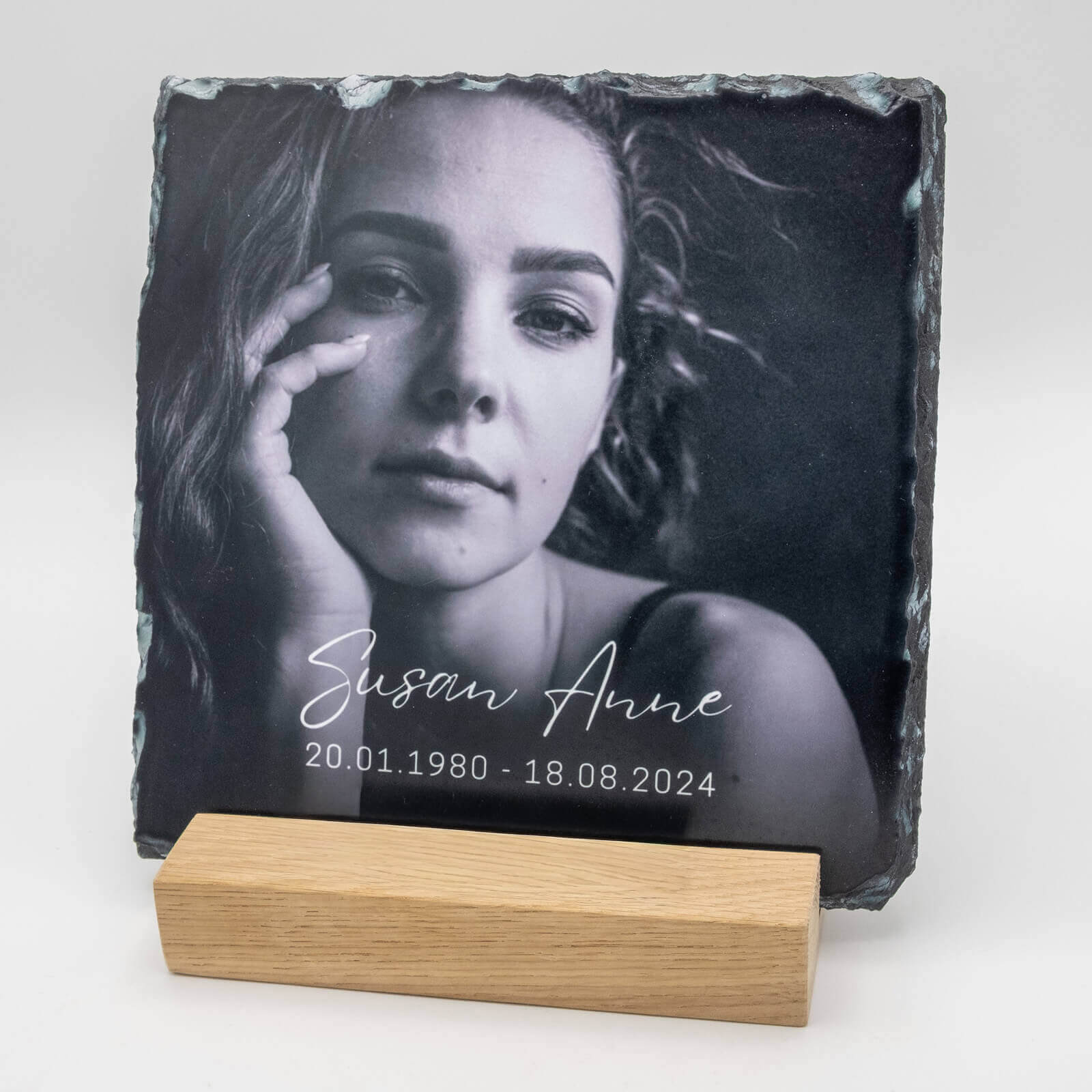 Hoewel de houder enkel geschikt is voor binnengebruik, vormt het op verschillende ondergronden een duurzaam en karaktervol fundament voor de gedenktegel. De natuurlijke uitstraling van het eikenhout brengt verbinding, eenvoud en warmte in jouw gedenkplaats.